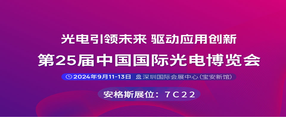 第25屆中國國際光電博覽會 日期:2024.9.11-13 地點(diǎn):深圳國際會展中心 安格斯展位號:7C22 期待您的到來!